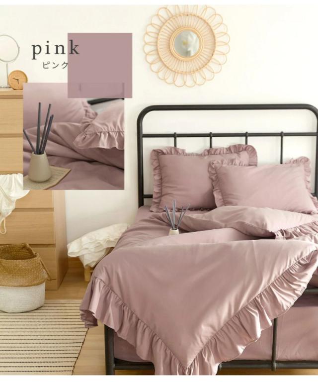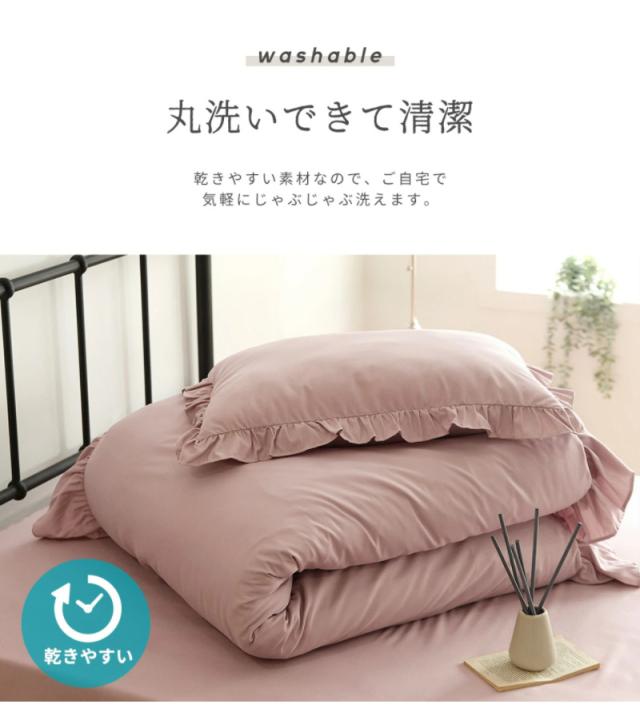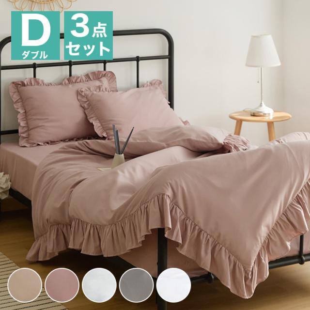 布団カバー 3点セット フリル付き ダブル フラットボックスシーツ タイプ おしゃれ ピーチスキン オールシーズン 布団カバーセット 寝具 新生活(代引不可)【送料無料】