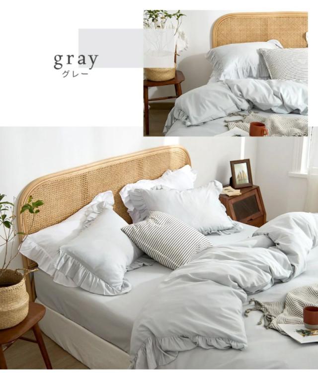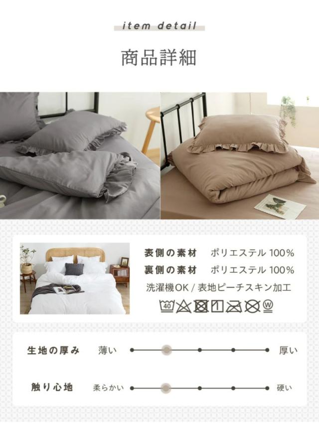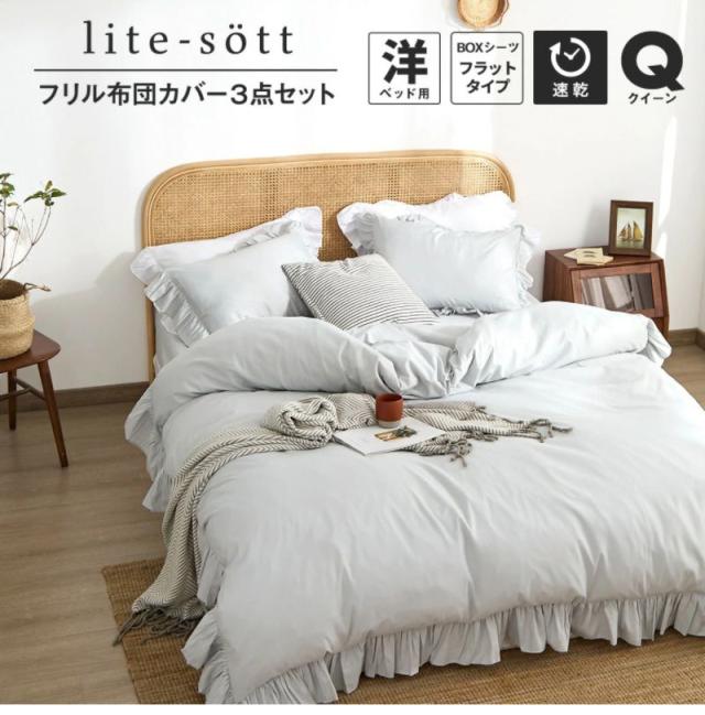 布団カバー 3点セット フリル付き クイーン フラットボックスシーツ タイプ おしゃれ ピーチスキン オールシーズン 布団カバーセット 寝具 新生活(代引不可)【送料無料】