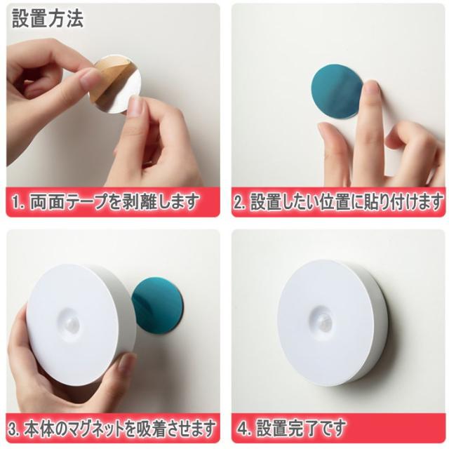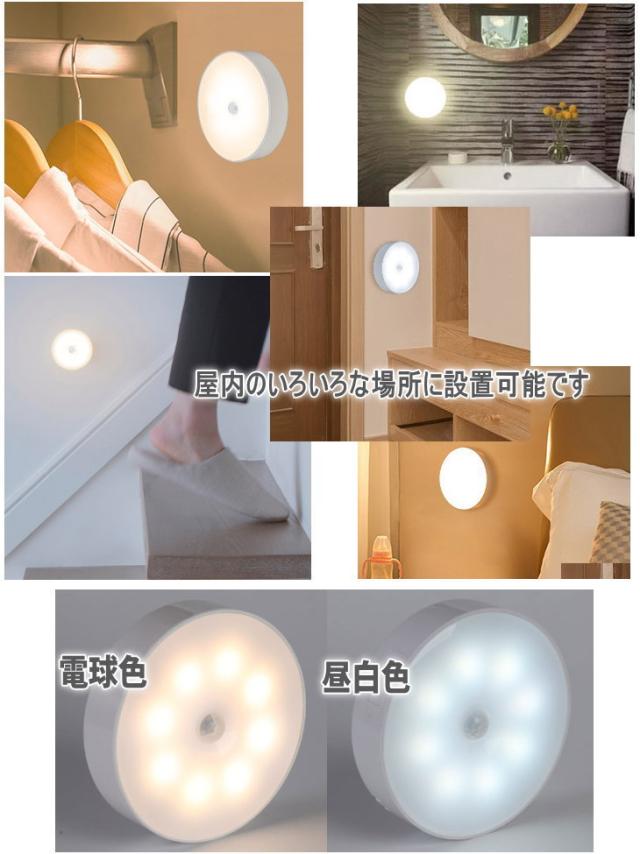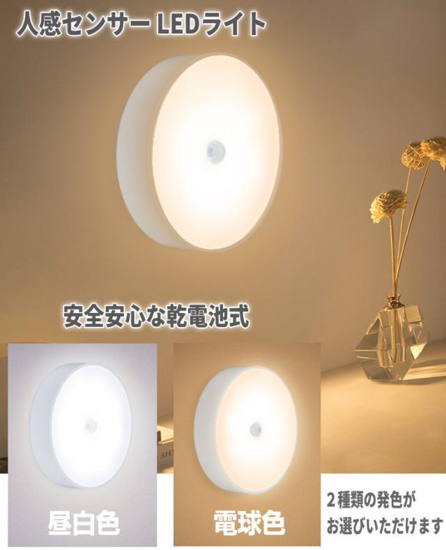 2個セット 人感センサー ライト 人感 電球 ライト 人感センサー LEDライト led 自動オンオフ ライト 電球色 昼白色 マグネット吸着 電池式 補助照明 屋内 人感センサーライト 丸形 小型 コンパクト