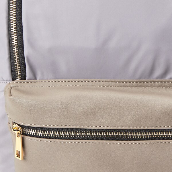 ゴールドのファスナーで、オフィスカジュアルなどのきれいめコーデにもマッチするスマートなデザインです。