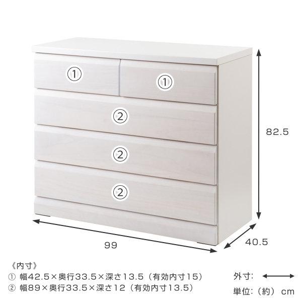 桐タンス 4段5杯 ワイド クローゼット収納チェスト キャスター付 幅99cm ( 収納 リビングチェスト たんす リビング収納 桐製 完成品 クローゼット リビングボード 日本製 木製 ホワイト ブラウン )