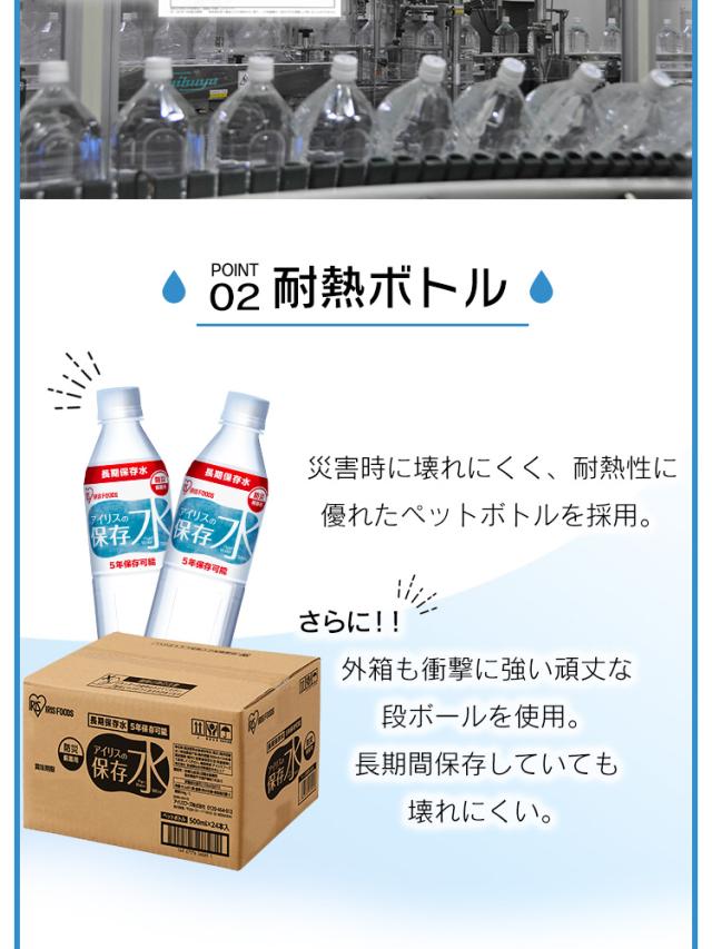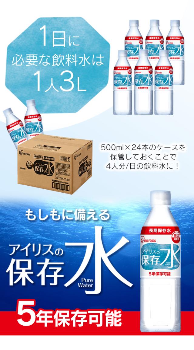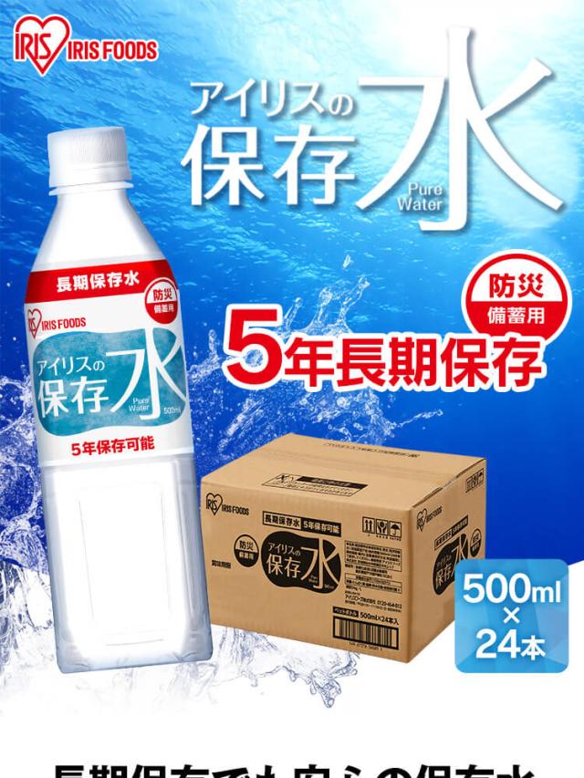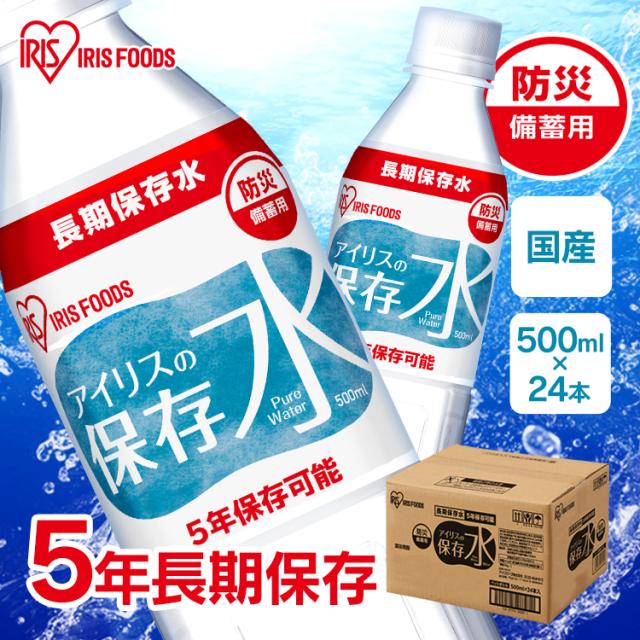 保存水 500ml 24本 長期保存水 アイリスオーヤマ アイリスフーズ アイリスの保存水 備蓄水 製造から 5年保存 防災グッズ 水 ペットボトル 車載 防災 災害 備蓄 防災用品 災害用水 飲料水 長期保存 軟水 備蓄用飲料水 ピュアウォーター *
