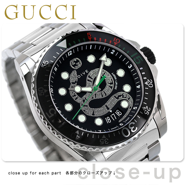 グッチ ダイヴ 45mm スネーク 蛇 腕時計 ブランド メンズ YA136218 GUCCI ブラック