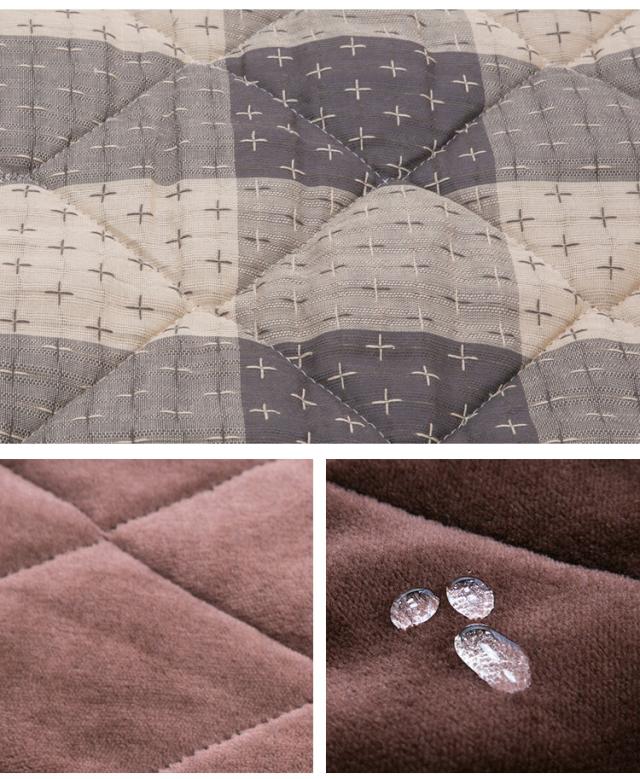 ■落ち着きのあるしじら折りの格子柄と、はっ水加工のフランネル面。両面使えるリバーシブル布団です。