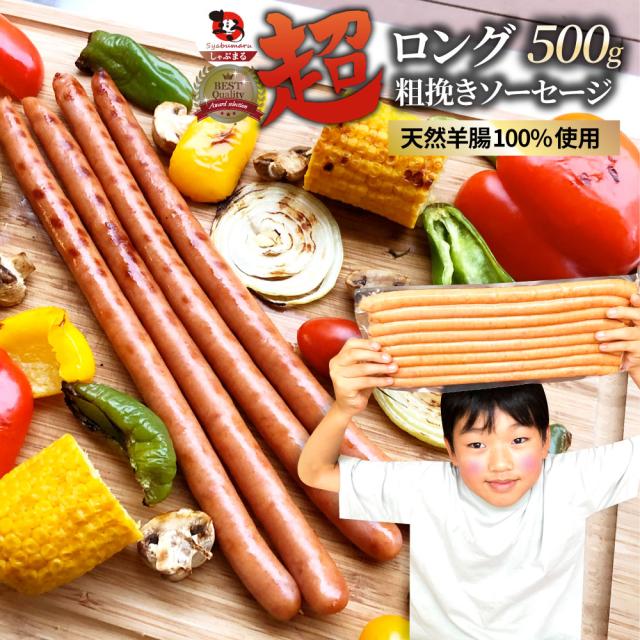 超ロング 粗挽きソーセージ 500g ソーセージ ウインナー 粗挽き 粗びき あらびき 天然腸 ポーク 豚 焼肉セット 焼肉 焼くだけ お弁当 弁当 アウトドア お家焼肉 お試し レジャー バーベキュー *当日発送対象 お肉の しゃぶまる