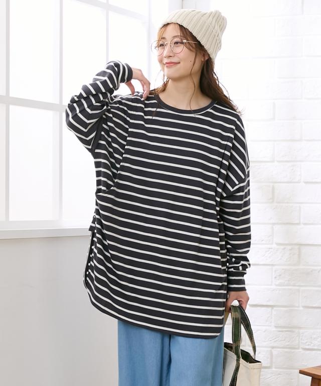 プルオーバー マタニティ ママ 産前 産後 授乳服 裾ラウンド 長袖 M/L ニッセン nissen agesugi_sfa