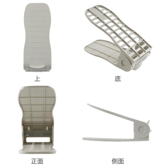 靴の厚さやかかとの高さに合わせて、4段階に角度調節が可能です。草履やサンダルなどの高さの低い靴から、ショートブーツなどの高さの高い靴まで収納できます。