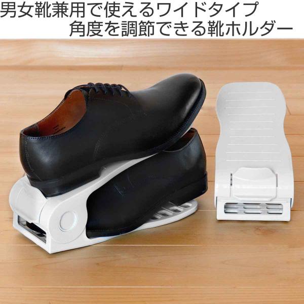 靴ホルダー 収納 2個入 ワイド 4段階 角度調整 滑り止め付き ( くつホルダー 幅広 靴 くつ シューズホルダー 下駄箱 シューズボックス シューズラック 省スペース 玄関 整理 整頓 収納グッズ 靴箱 ストッパー付き )