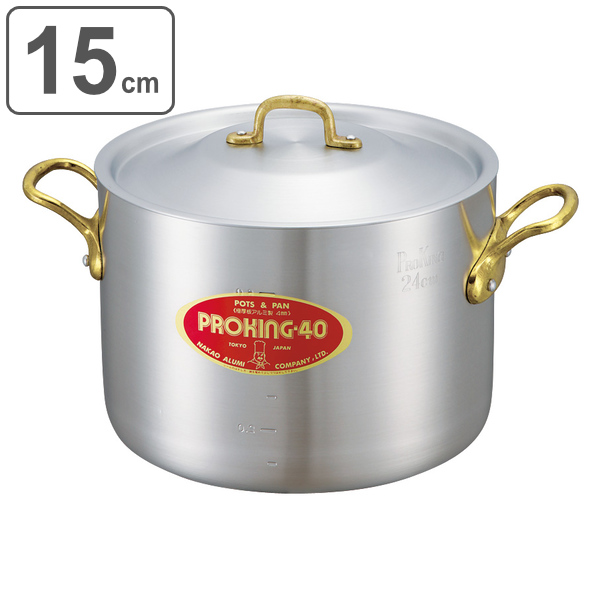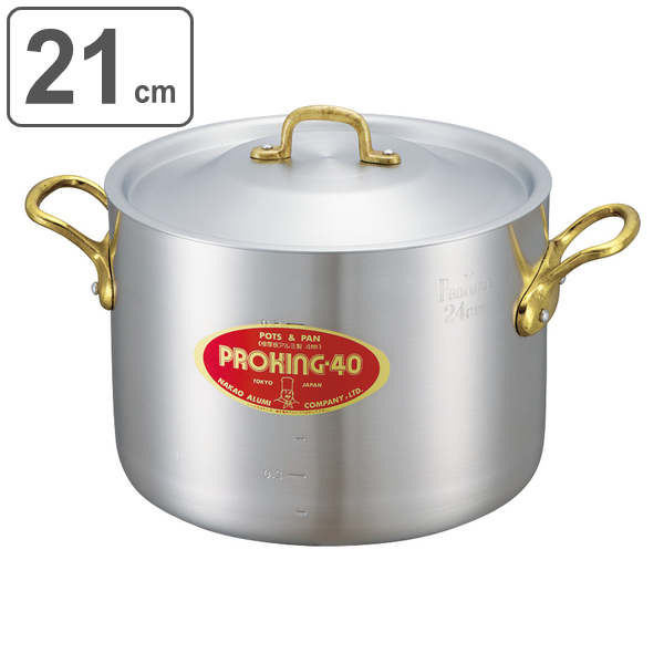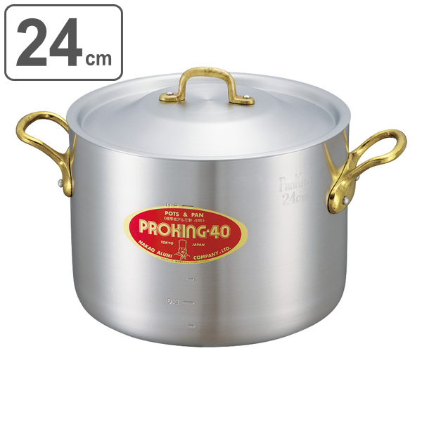 半寸胴鍋 36cm 23L ガス火専用 プロキング 業務用 中尾アルミ 両手鍋 メジャー付き ( ガス火対応 目盛り付き アルミ鍋 フタ付き 深型鍋 厨房用品 厨房器具 業務用鍋 鍋 なべ 36 cm )