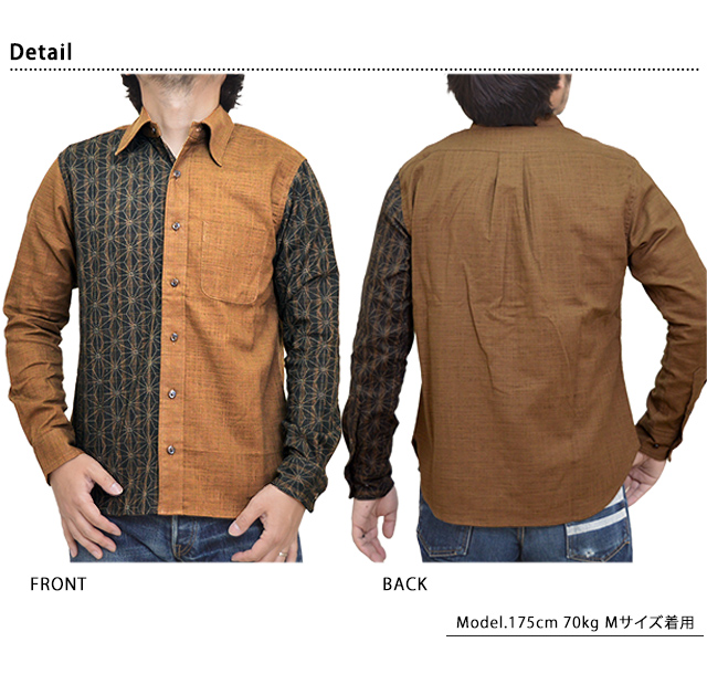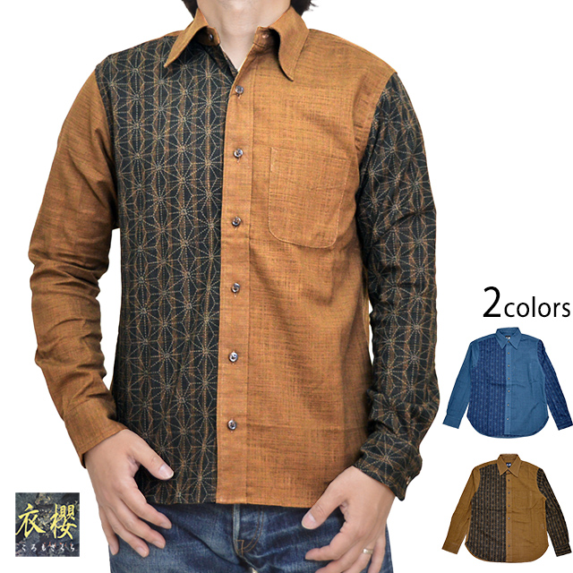 表裏一体切替レギュラー長袖シャツ「縞麻ノ葉」 衣櫻 SA-1417 和柄 和風 日本製 国産 ロングスリーブ[mij_m][mij]
