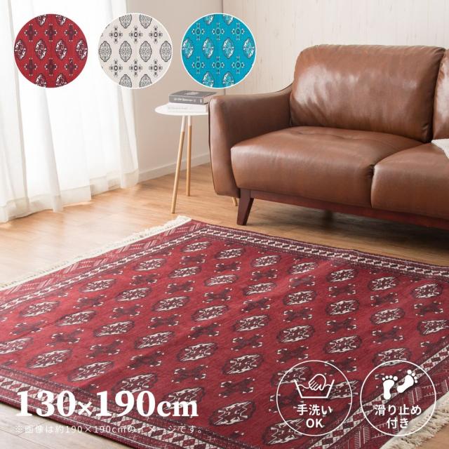 ラグ 洗える 1.5畳 ラグマット 約130×190cm おしゃれ トルクメン風 プリント シェニール コンパクト収納 春夏 オールシーズン 長方形 年中使える トルコ お洒落 滑り止め 手洗いOK タッセル ペルシャ絨毯 カーペット