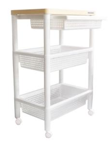 不動技研 ウッドテーブルワゴン 引き出しバスケット付き ホワイト F-2491