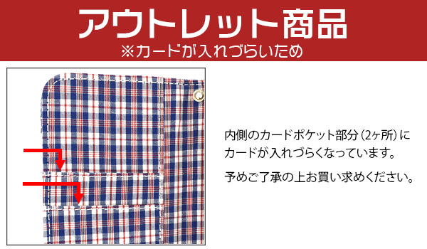 【アウトレット理由】内側カードポケット部分(2カ所)にカードが入れずらくなっているため。アウトレット商品のため返品はお受けできません。ご了承のうえご注文ください。
