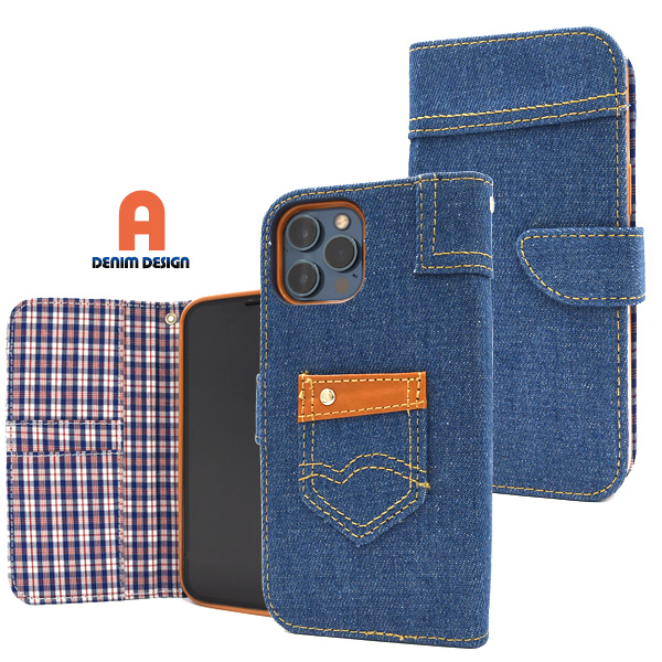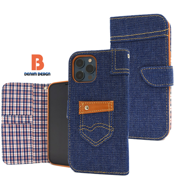 スマホケース iPhone12ProMax用 訳あり アウトレット 手帳型 チェック デニムケース ポケット付き デニムデザイン 可愛い スマホカバー アイフォンケース お洒落 携帯ケース 大人可愛い シンプル カジュアル オシャレ おしゃれ スマートフォンケース SoftBank au docomo