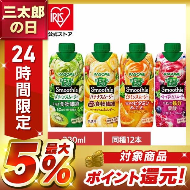 【同種12本】カゴメ スムージー 野菜生活 330ml 野菜スムージー 野菜ジュース 紙パック グリーンスムージー ビタミンスムージー 紙パックジュース 紙パック飲料 グリーン ビタミン 飲料 食物繊維 手軽 まとめ買い かごめ kagome KAGOME【D】