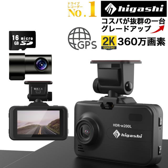 \2000円OFF タイムセール/【ランキング1位 着レビュープレゼント】 ドライブレコーダー 前後2カメラ 前360万画素 後200万画素 ドラレコ フルHD 高画質 GPS搭載 WDR 駐車監視 対応 広角 ノイズ対策済 LED信号機対策 人気 簡単 取り付け 送料無料 型番HDR-w200L