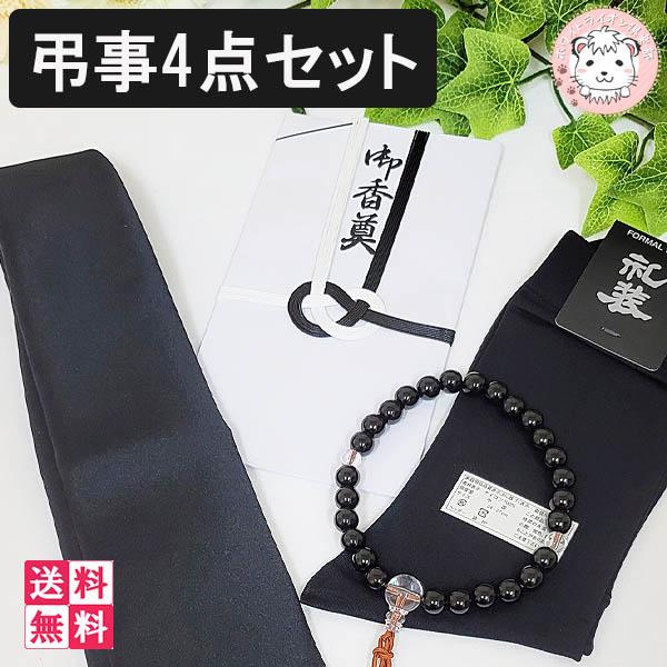 弔事4点セット 礼装 葬祭 ネクタイ 数珠 靴下 香典袋 葬祭パック