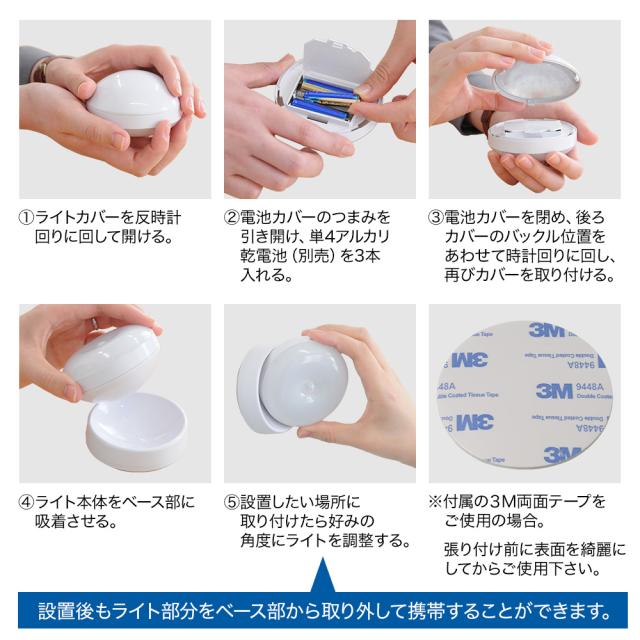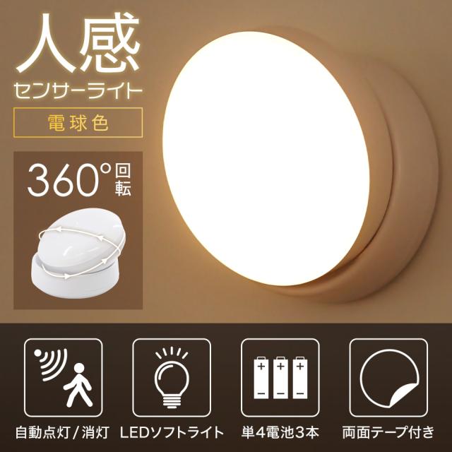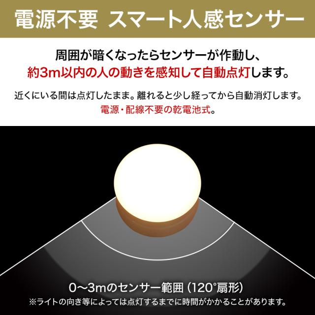 人感センサーライト LED センサーライト 人感 室内 屋内 電池 玄関 トイレ マグネット 取り外し 電池式 丸型 円型 電球 人感センサー