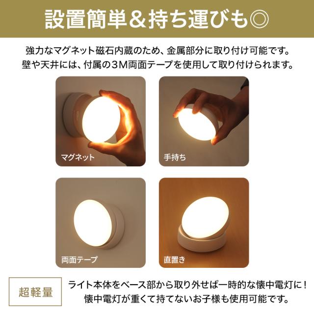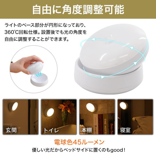 ライト LEDライト 360度回転 電球色 照明 コンパクト 照明 自動点灯 白色 自動消灯 送料無料 マグネット式 角度調節 角度調整