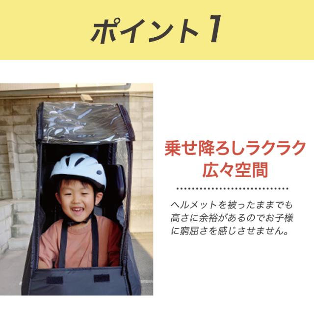 - 身長120?の子でも高さに余裕があり、値段も高すぎなく満足してます!装着も簡単です! 座った時の足部分は少し窮屈そうですが、防寒と雨の日しか使わないので問題なしです。(冬は付けっぱなし) もっと早く買えば良かったです!