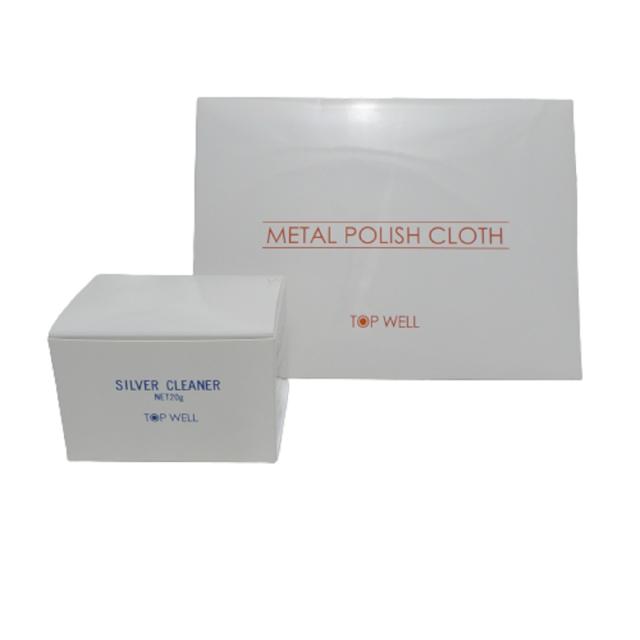 トップウェル製のアクセサリーのケア用品、シルバークリーナー20gとメタルポリッシュクロスがセットになったお得な商品の登場です。