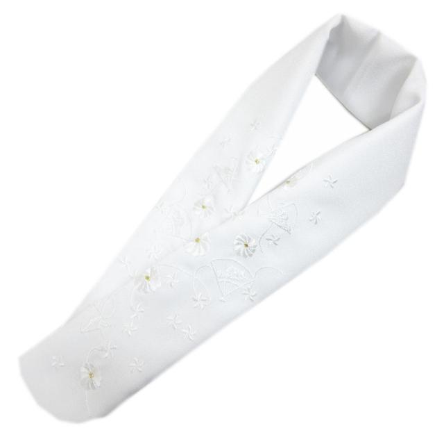 半衿 半襟 刺繍 白色地 金糸入り 扇子小花 振袖 成人式 卒業式 袴 着物 洗える 女性用 レディース 訪問着 はかま きもの 振袖用