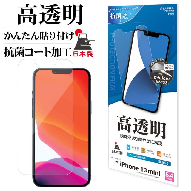 ラスタバナナ iPhone13 mini フィルム 全面保護 高光沢 高透明 クリア 抗菌 日本製 簡単貼り付け アイフォン13 保護フィルム P3010IP154