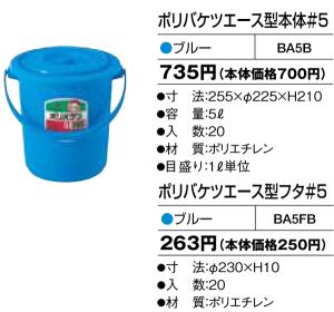 積水テクノ成型 ポリバケツエース型 本体のみ#5 BA5B ブルー