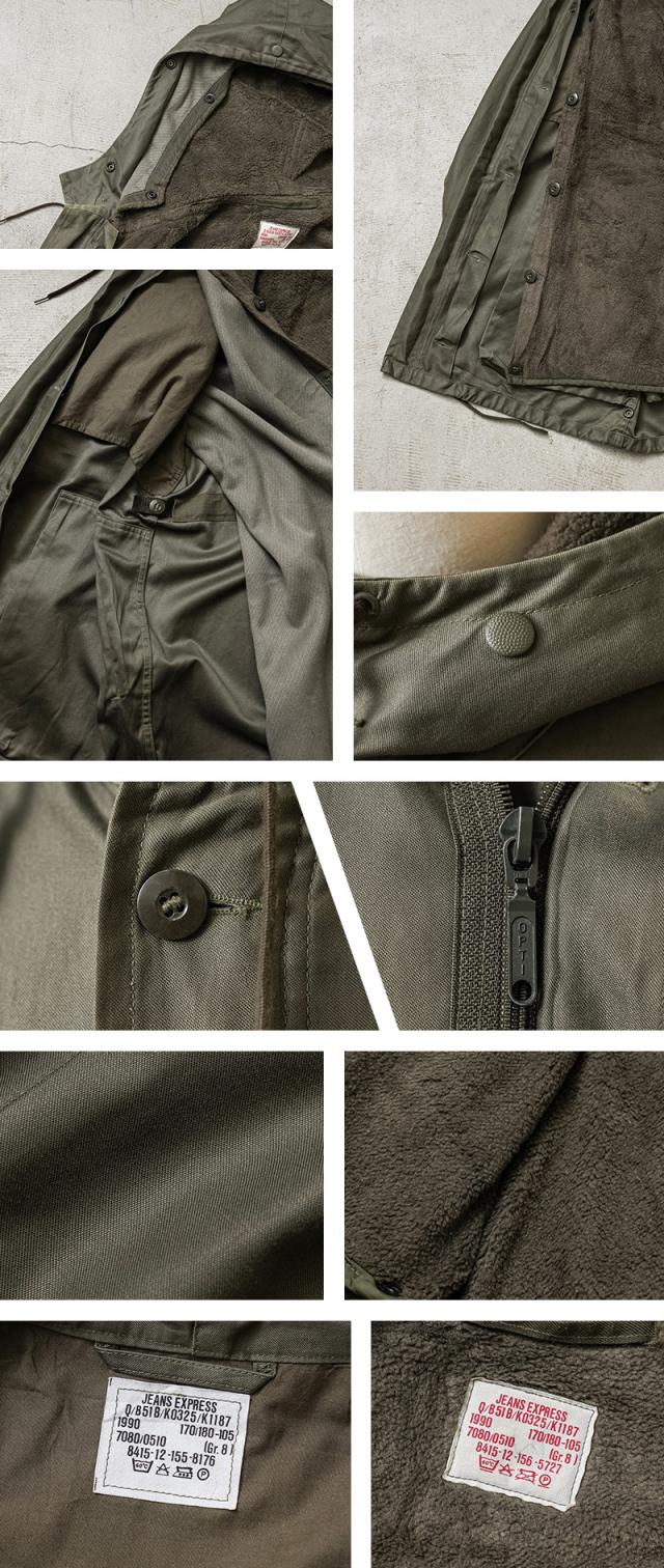 | 商品説明 | 実物 USED ドイツ軍 ボアライニング フィールドパーカー ODのご紹介です。 近年発見が非常に難しく入手困難な、ドイツ連邦軍において1960年代初頭から、90年代初頭まで採用されていたライナー着脱可能な厚手のフィールドパーカーです。 フレクターカモや、フレックターンと呼ばれるカモパターンのフィールドユニフォームが採用される90年代まで使用されていたアイテムで、USEDですが良い雰囲気が出ています。これが本物にしか出せない味だと思います。 ボアライナーが着脱可能な厚手のパーカーで、防寒性もあり、スタイリッシュなデザインでファッションのジャンルを問わず着ていただけます。 ライナーを外せば薄手のコートになりますので春、秋も着ていただけますので3シーズン大活躍します。 昨今はライナーのみの着用が当たり前になってきていますので、このボアライナーをライナーとして使用する場合はボアを内側にしてシェルに取り付けますが、ボアライナー単体で着用する際にはボア部分を外側にすることで、ライナーだけでの着こなしもできる面白いデザインをしているのでおすすめです! フロントはジッパーとボタンで開閉、フード一体型のデザインで、フード部分や袖の内側までボアが付きますので防寒性は抜群。フラップ付きの胸ポケットに、インナーポケットも1つ付属、ウエスト部分のポケットはフラップを内側に入れることで手の出し入れもしやすく使用可能です。フード及び裾にはコードが内蔵されています。 最近では放出される機会も本当に少なくなりました。米軍のM-65 フィッシュテールパーカー(モッズコート)に並ぶ人気を誇り、ライナー付きで実用性が高く、タウンユースにも馴染むデザインは希少性、ファッション性、実用性の三拍子が揃った名品で、ドイツ版のモッズコートと言ったフィールドパーカーです!本当に出てこない希少アイテムです。この機会にぜひ! | ||||||||||||||||||||||||||||||||||||||||||||||||||||||||||||||||||||||||||||||||||||||||||||||||||||||||||||||||||||||||||||||