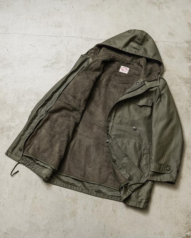 近年発見が非常に難しく入手困難な、ドイツ連邦軍において1960年代初頭から、90年代初頭まで採用されていたライナー着脱可能な厚手のフィールドパーカーです。フレクターカモや、フレックターンと呼ばれるカモパターンのフィールドユニフォームが採用される90年代まで使用されていたアイテムで、USEDですが良い雰囲気が出ています。これが本物にしか出せない味だと思います。ボアライナーが着脱可能な厚手のパーカーで、防寒性もあり、スタイリッシュなデザインでファッションのジャンルを問わず着ていただけます。