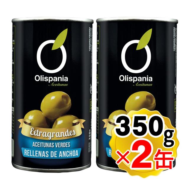 オリスパニア アンチョビ入り グリーンオリーブ 缶 1個 ( 約24〜30粒入り 固形量 150g 内容総量 350g )×2缶セット Olispania スペイン産 マンザニラ