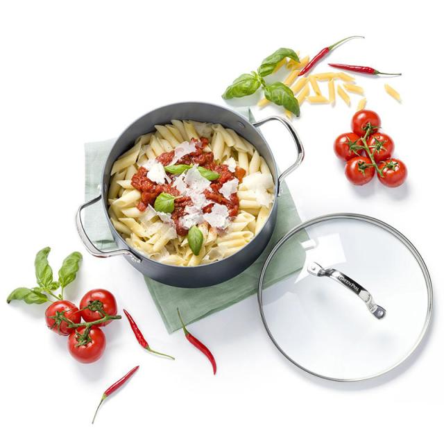 有害物質を一切使用していない調理器具の開発を手掛けるGreenPan(グリーンパン)のキャセロール。ゆったりとした深さがあり、煮物・揚げ物・炒め物・お菓子作りと幅広いお料理に対応。金属製ツールや食洗器を使用してもコーティングが取れにくい加工をプラスし、毎日気兼ねなくお使いいただけます。