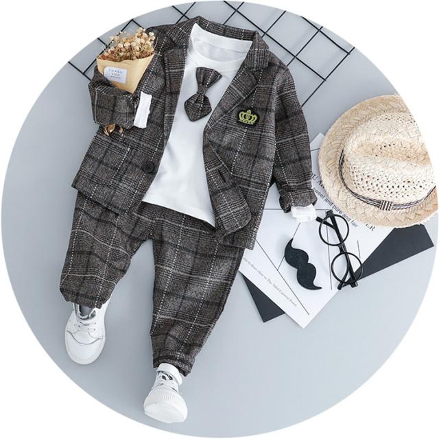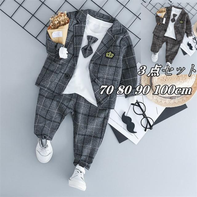 フォーマル 男の子 ベビー 長袖 スーツ チェック柄 3点セットオシャレ 子供服 ベビー服 紳士風 赤ちゃん 子供 入学式 入園 卒園式 誕生日 結婚式70 80 90 100