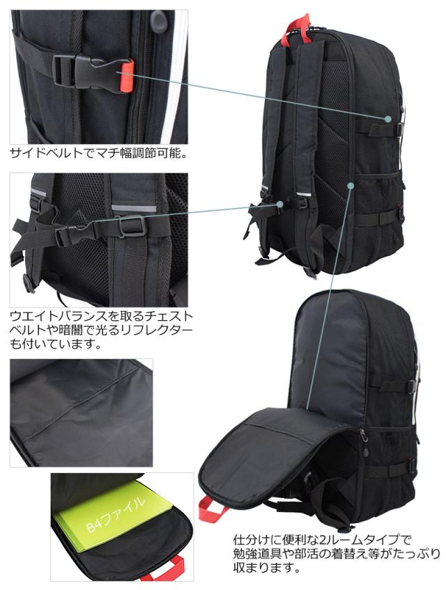 撥水加工を施した生地や、重い荷物の持ち運びに欠かせないチェストベルト、夜間の安全性を高めるリフレクターなど、毎日の通学を支える多彩な機能が満載です。