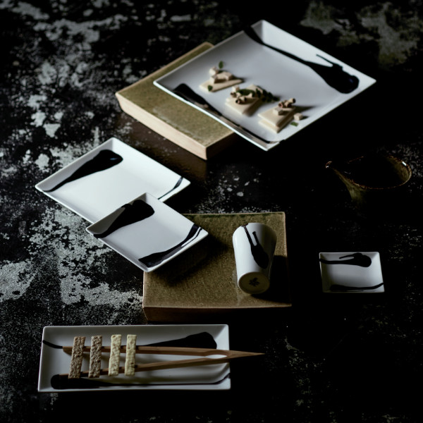 斬新かつスタイリッシュな墨のデザインのうつわ