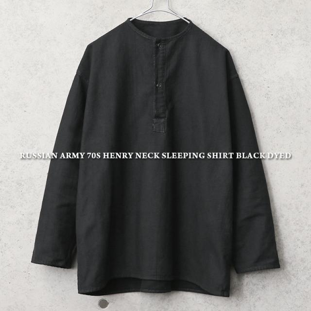 実物 新品 デッドストック ロシア軍 70s ヘンリーネック スリーピングシャツ BLACK染め【Cx】【I】|メンズ トップス ノーカラー 黒 無地 プルオーバー 古着 ファッション おしゃれ