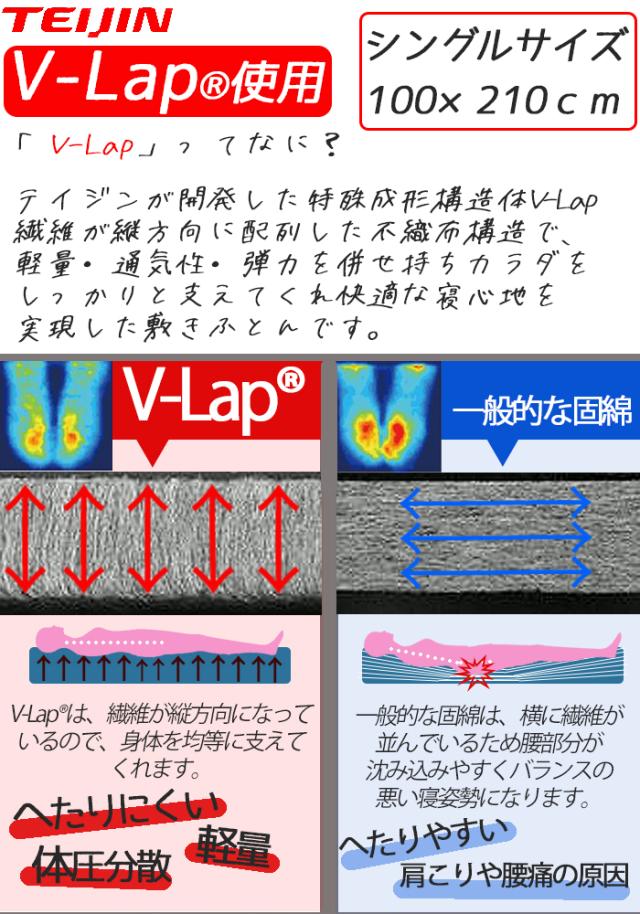 V-LAP 三層固綿敷ふとん シングル 日本製 綿100% へたりにくい敷布団 軽量敷きふとん 100×210cm 808-SL 833-SL