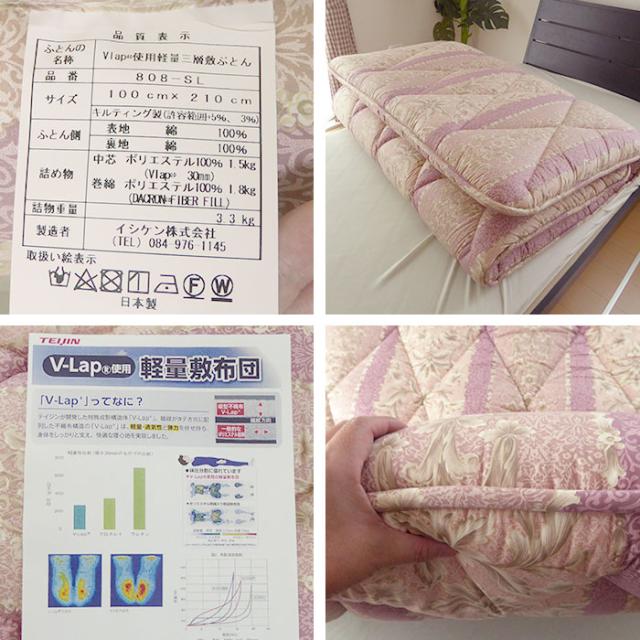 テイジンのV-Lapを使用した軽くてヘタりにくい敷きふとん