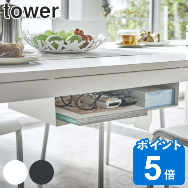 ラック 収納ラック テーブル下 タワー tower 山崎実業 ( 収納 テーブル下収納 小物収納 リモコン ティッシュケース テーブル 下 ダイニングテーブル下収納 後付け 白 黒 おしゃれ tower 山崎実業 タワーtower 山崎実業 山崎実業 tower)