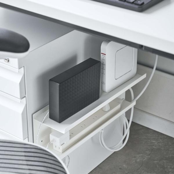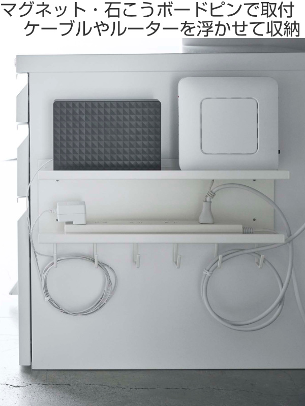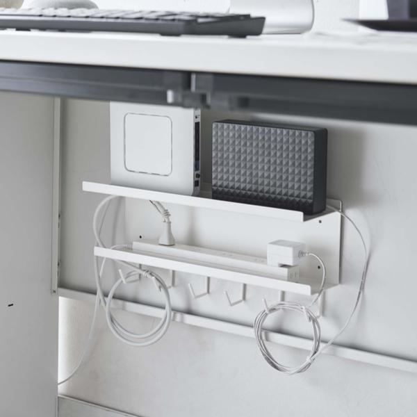 山崎実業 smart マグネット ケーブル&ルーター収納ラック スマート ( 磁石 ケーブル 収納 ルーター モデム 収納用品 机下 タップ収納 フック付き フック コンセント スリム コード 白 黒 おしゃれ 壁面収納 壁付け 壁 )