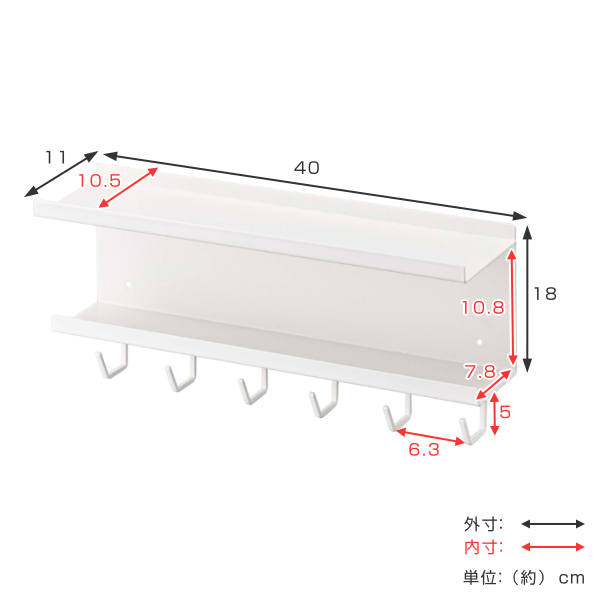 | 耐荷重 | 全体:約3kg フック1つあたり:約500g |