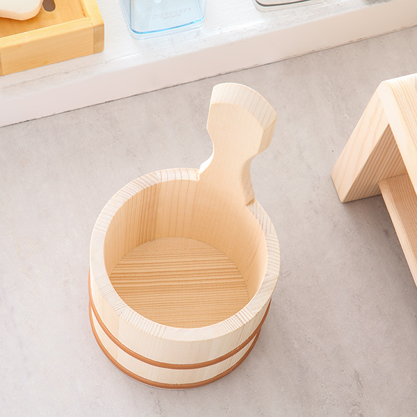 自然派の方にオススメの片手湯桶です。自宅でお使いいただくと、温泉に行ったような気分を味わえます。昔懐かしい木の浴用品が心地よく楽しい入浴時間を演出してくれます。