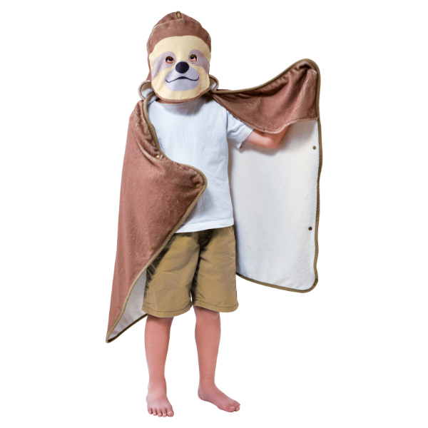 ガブっと頭に噛みつかれたようにかぶる、ナマケモノのバスタオルです。子供も大人もかぶれるゆったりサイズになっているので、親子で楽しめちゃうバスタオルです。フワフワのマイクロファイバーを使用しているので、肌ざわりがよく吸水性に優れています。
