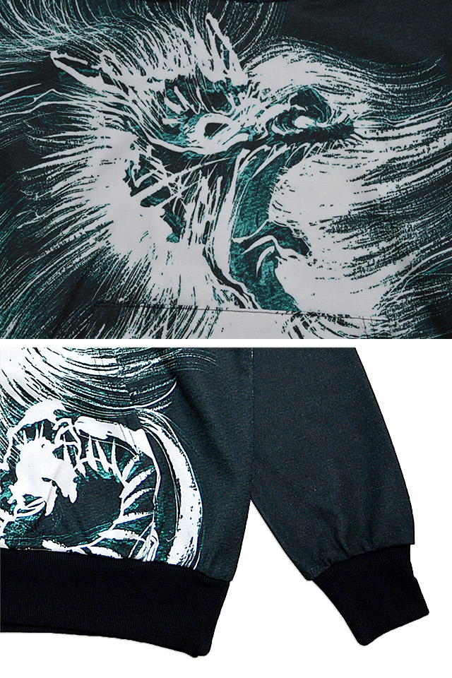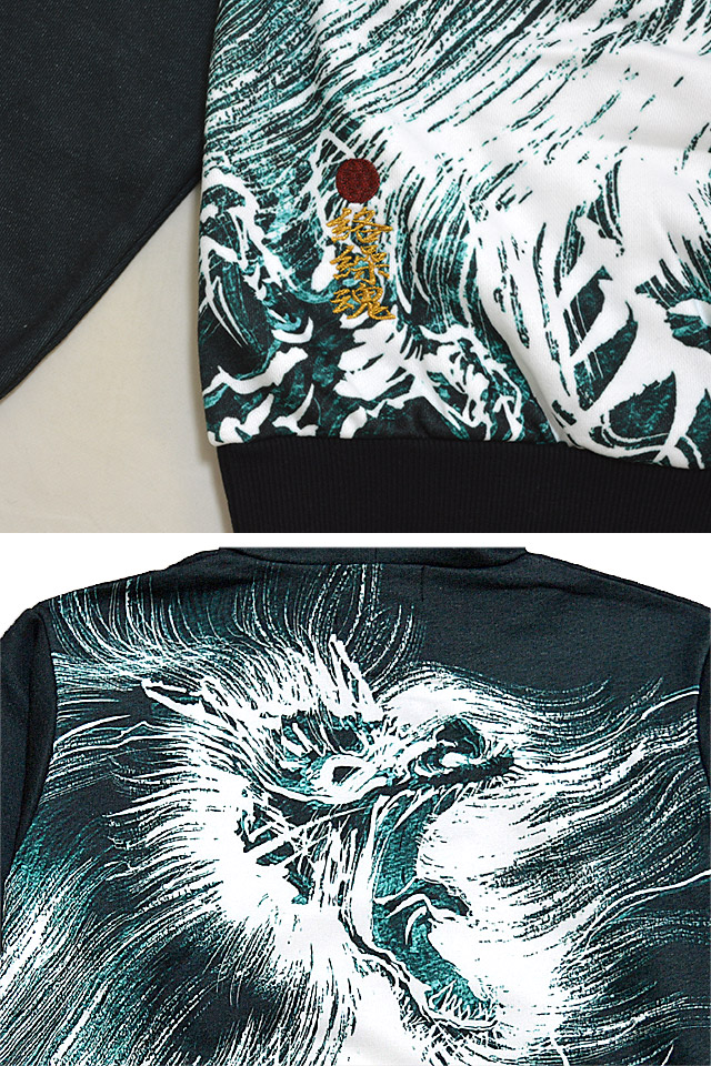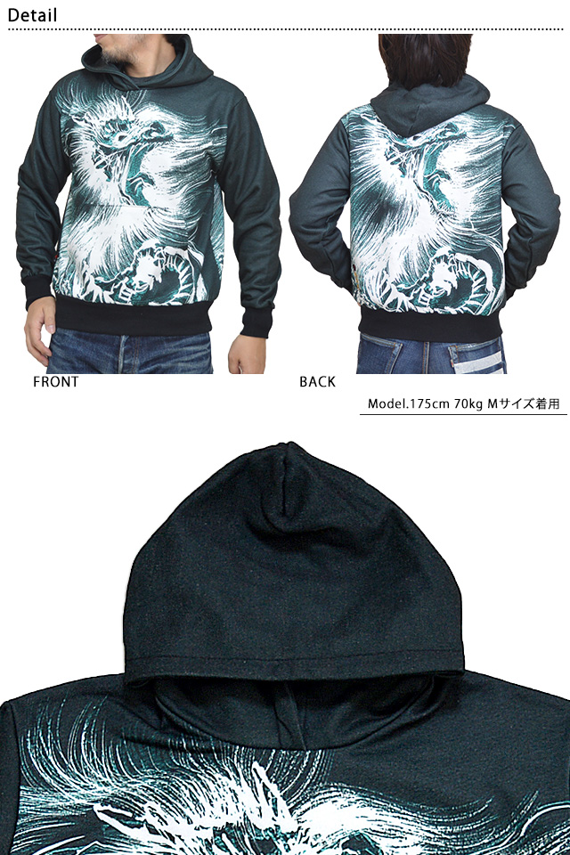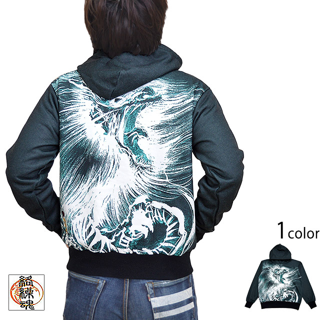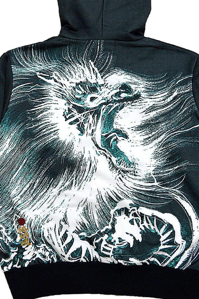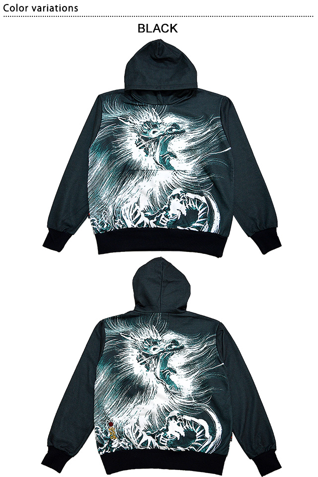 絡繰魂×中塚 墨絵昇華転写プリントパーカー 絡繰魂 213812 和柄 和風 水墨画 龍 竜 プルオーバー