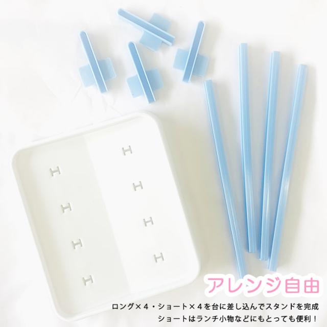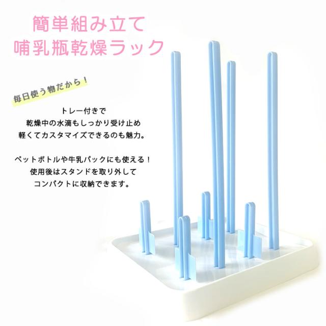 コンパクトでシンク回りもスッキリ、 ロング4本、ショート4本を台に差し込み アレンジ自由な乾燥ラック。 ・ロングは哺乳瓶やペットボトル、牛乳パックに大活躍 ・ショートはニップルや蓋、ストローなどに大活躍 ・水受け用のトレーは外して洗うことができるので、衛生的です ・洗い終わったペットボトルやグラスをサッと置いて乾かすことができます。 |