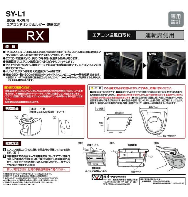 レクサス RX専用 エアコンドリンクホルダー 運転席用 SY-L1 | LEXUS 20系 レクサスRX RX 専用 レクサスRX専用 ヤック YAC ドリンクホルダー 送風口 送風口パネル エアコン 簡単取付