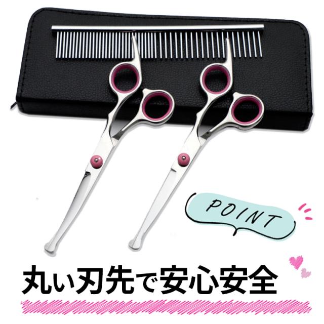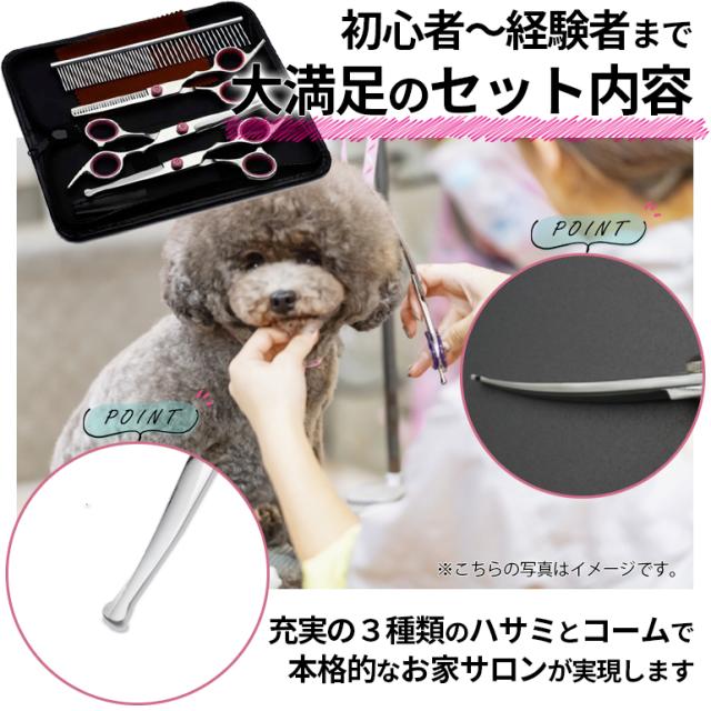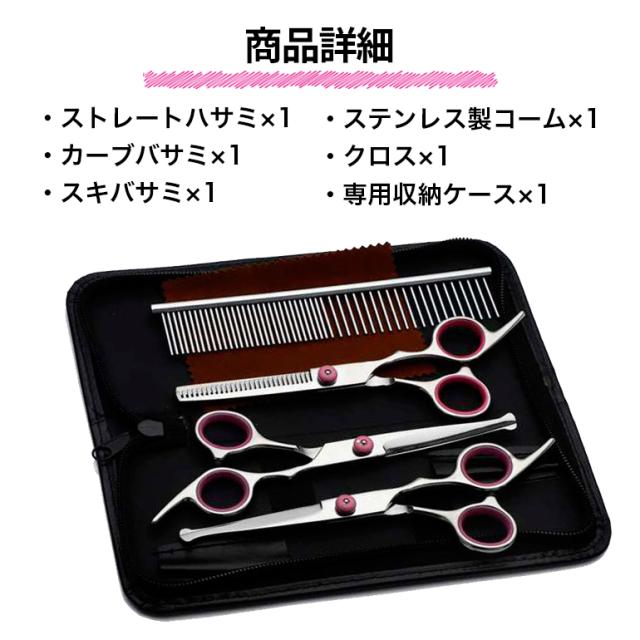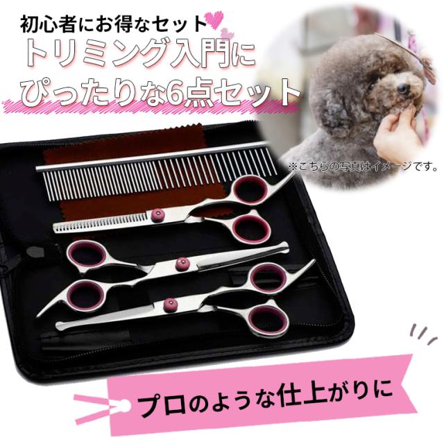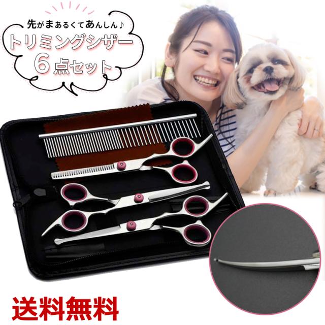 ペット用 トリミング 6点セット ハサミ コーム くし スキバサミ ケース付き 安全 セルフカット お手入れ トリマー 犬 猫 ペット 送料無料
