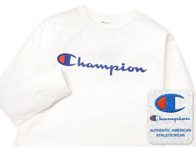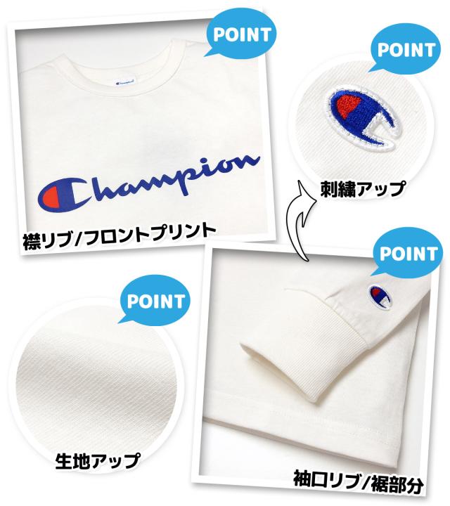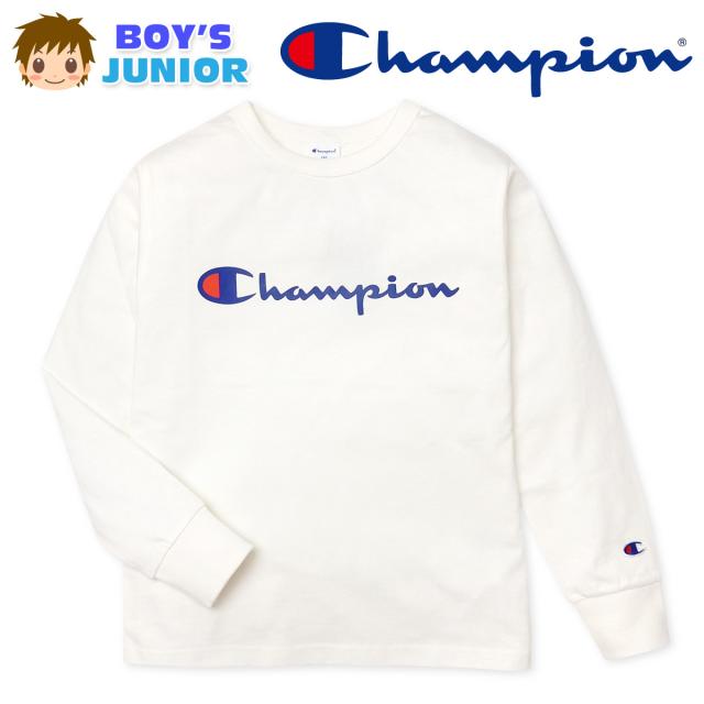 【送料無料】男児 ジュニア 長袖 Tシャツ Champion/チャンピオン 本体綿100% 袖口リブ ロゴプリント 刺繍 子供服 男の子 140cm 150cm 160cm td-0177e-wt【メール便対応】