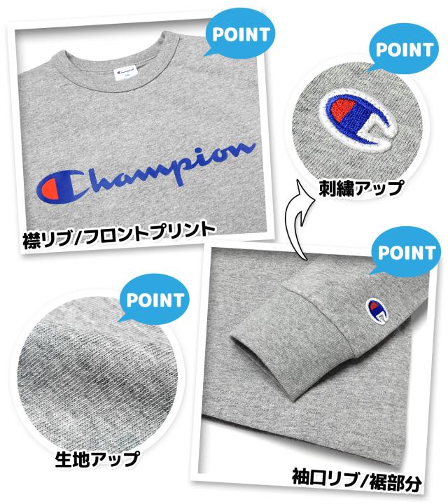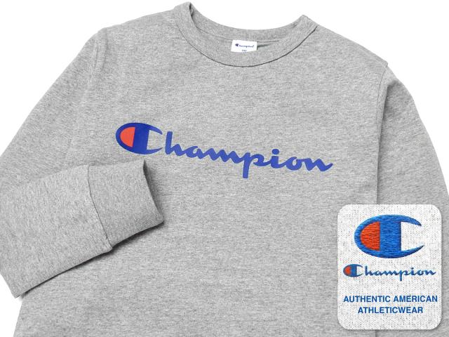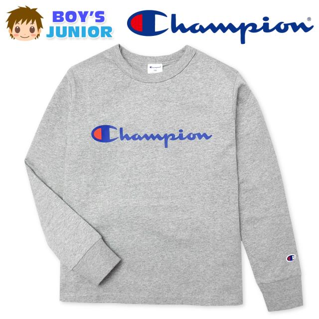 【送料無料】男児 ジュニア 長袖 Tシャツ Champion/チャンピオン 本体綿100% 袖口リブ ロゴプリント 刺繍 子供服 男の子 140cm 150cm 160cm td-0177f-gy【メール便対応】