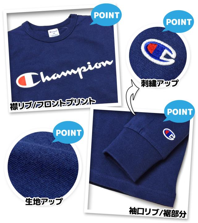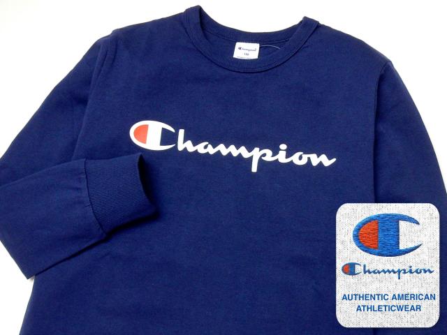 【送料無料】男児 ジュニア 長袖 Tシャツ Champion/チャンピオン 本体綿100% 袖口リブ ロゴプリント 刺繍 子供服 男の子 140cm 150cm 160cm td-0177g-nv【メール便対応】